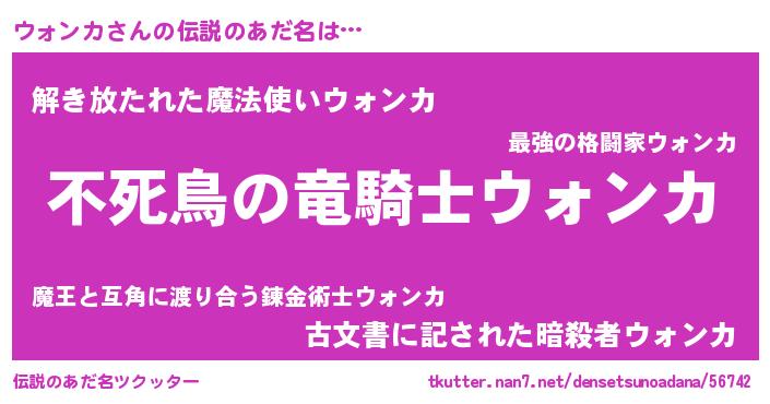 | ヒーロー風カッコイイあだ名 | 『スーパーウォンカ』『幻影騎士ウォ』 |