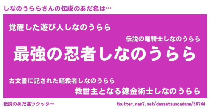 | 意味不明あだ名 | 『自称しなのうらら』 |