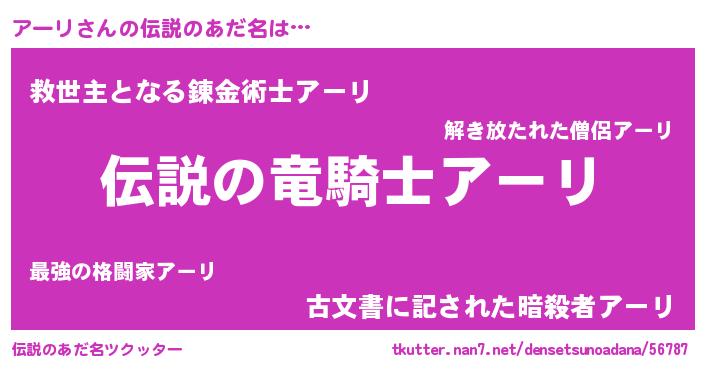 | ヒーロー風カッコイイあだ名 | 『仮面アーダー』『スーパーアーリ』 |