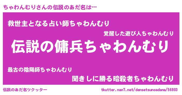 | 女子向けラノベタイトル風あだ名 | 『ちゃわんむりが死なない童話 林檎のちゃわんむりの診療簿』 |