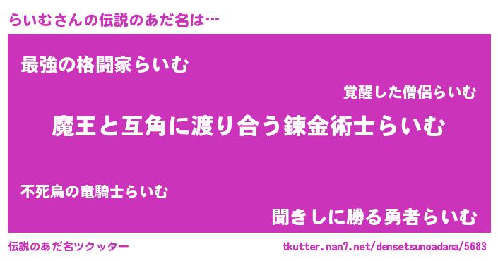 | 意味不明あだ名 | 『住所不定無職らいむ(98歳)』『自称らいむ』 |