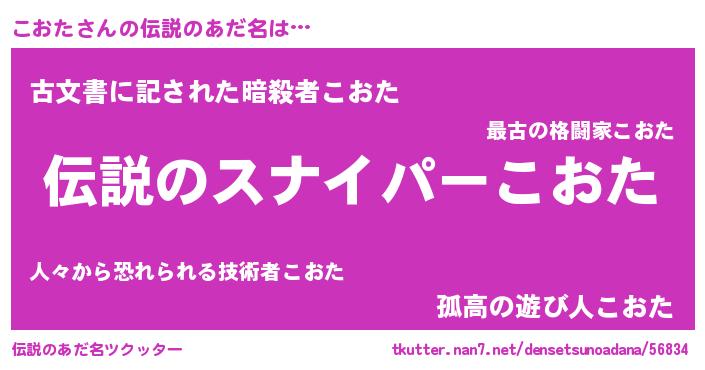 | ヒーロー風カッコイイあだ名 | 『スーパーコオタ』『究極戦士コオタ』 |