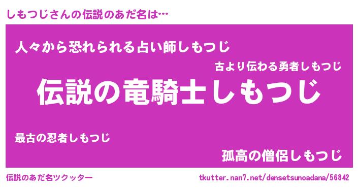 | 男性向けラノベタイトル風あだ名 | 『しもつじの憂鬱』 |