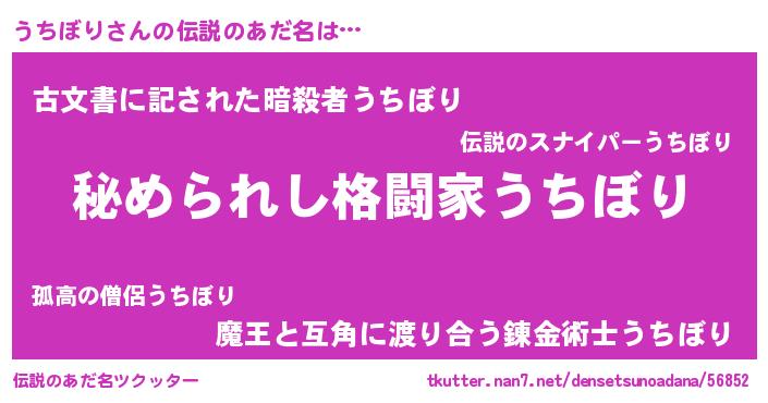 | ヒーロー風カッコイイあだ名 | 『ウルトラうちぼりマン』『ネオウチボリ』 |