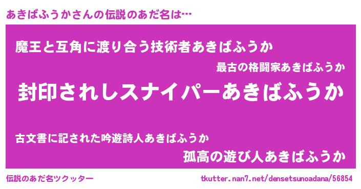 | 男性向けラノベタイトル風あだ名 | 『うちのあきばふうかが世界を掌握している!』 |