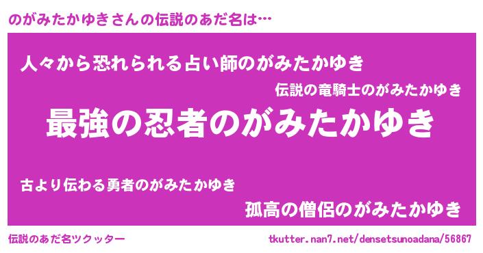 | 意味不明あだ名 | 『のがみたかゆきフォーエバー』 |