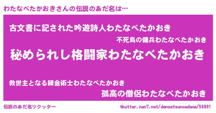 | 意味不明あだ名 | 『わたなべたかおきフォーエバー』 |