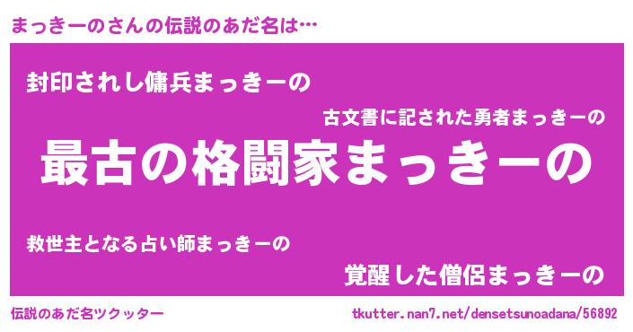 | 男性向けラノベタイトル風あだ名 | 『魔弾の王とまっきーの』 |