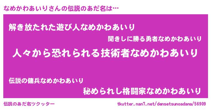 | 欧米人風あだ名 | 『ダニエルなめかわあいり』 |