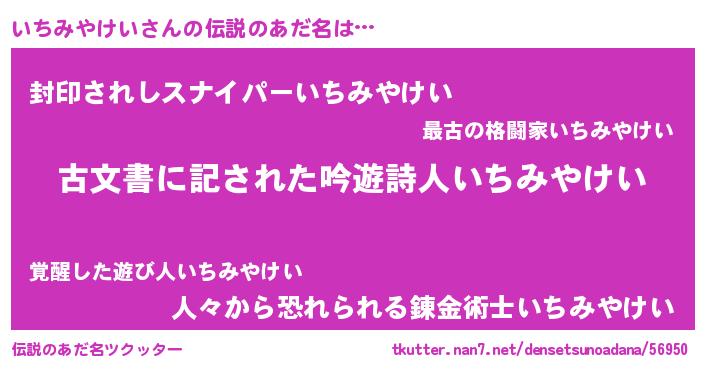 | 意味不明あだ名 | 『自称いちみやけい』 |