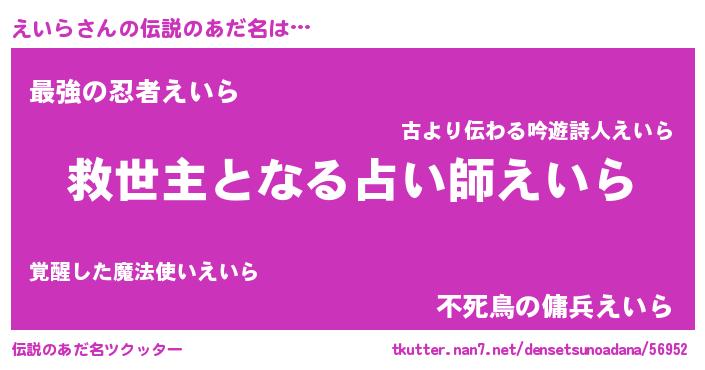 | 男性向けラノベタイトル風あだ名 | 『えいらに滅ぼされるだけの簡単なお仕事です』 |
