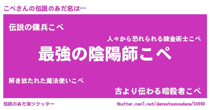 | ヒーロー風カッコイイあだ名 | 『ウルトラこぺマン』『仮面コペダー』 |