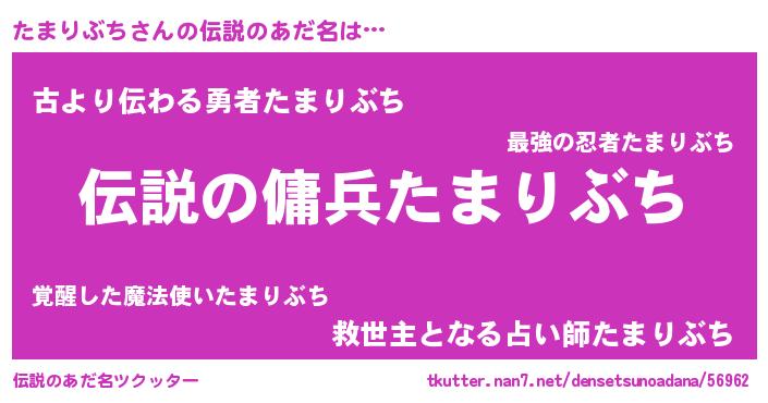 | 女子向けラノベタイトル風あだ名 | 『たまりぶちなんてお断りですっ。』 |