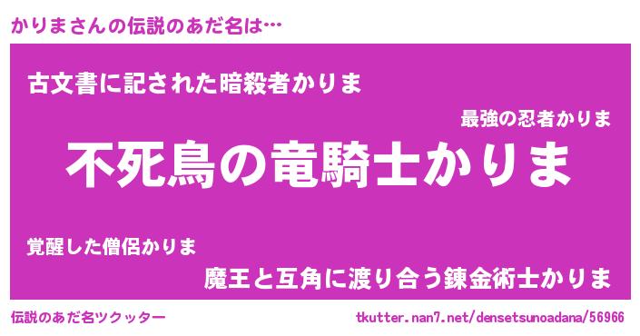 | 意味不明あだ名 | 『自称かりま』『ペロリンかりま』 |