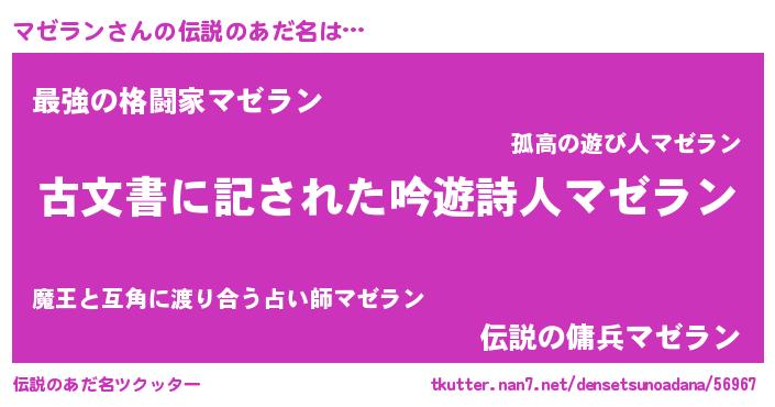 | 男性向けラノベタイトル風あだ名 | 『誰もが恐れるあのマゼランが、ぼくの専属メイドになるようです。』 |