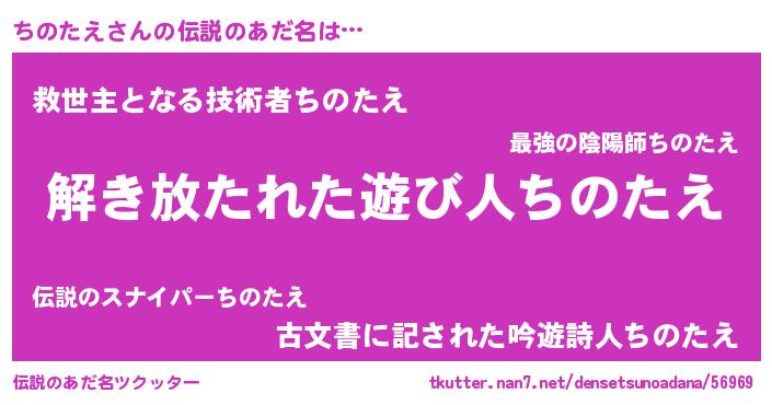 | 女子向けラノベタイトル風あだ名 | 『乙女ゲームの破滅フラグしかない悪役ちのたえに転生してしまった…』 |