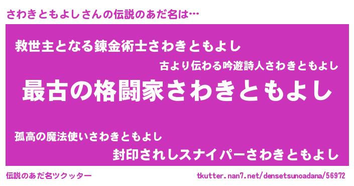 | 意味不明あだ名 | 『住所不定無職さわきともよし(9歳)』 |
