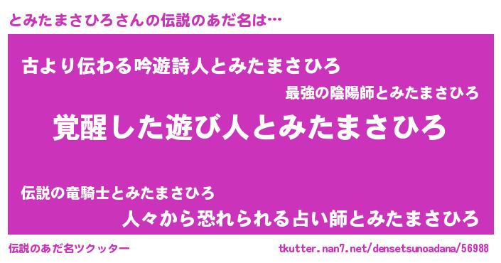 | 男性向けラノベタイトル風あだ名 | 『とみたまさひろの嫁は女の子じゃないと思った?』 |
