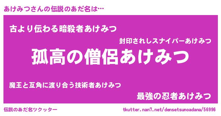 | 意味不明あだ名 | 『とにかく怪しいあけみつ』 |