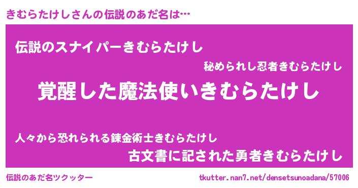 | 男性向けラノベタイトル風あだ名 | 『きむらたけしの嫁は女の子じゃないと思った?』 |