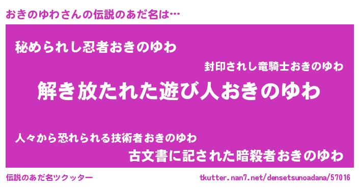 | ポケモン風あだ名 | 『オーキイ』『ヒオキノユワ』 |