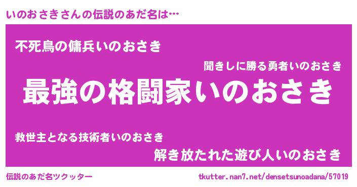 | ヒーロー風カッコイイあだ名 | 『究極戦士イノオサキ』『幻影騎士イノ』 |