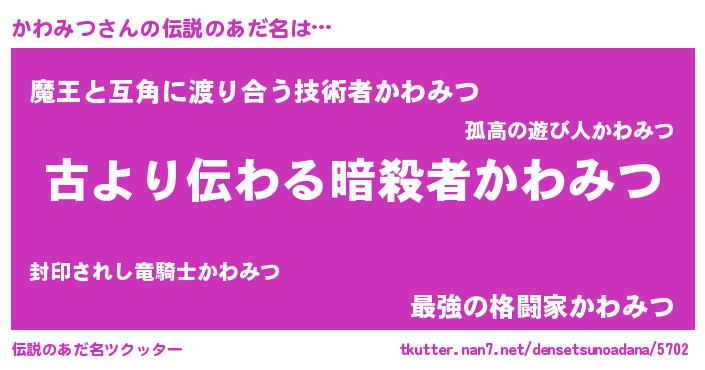 | 胡散臭い通販商品みたいなあだ名 | 『来世でも幸せになれる健康食品…その名も「かわみつ」』 |