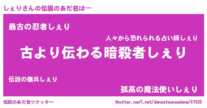 | 意味不明あだ名 | 『永久保存しぇり』『たけのこ科しぇり属』 |