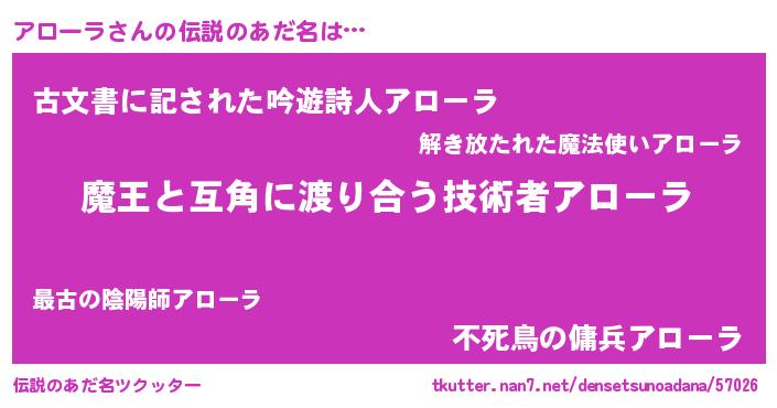 | ヒーロー風カッコイイあだ名 | 『愛の使者アローラ』『ネオアローラ』 |