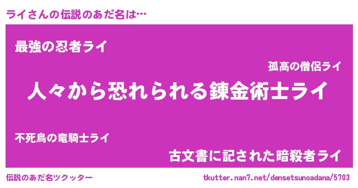 | 女子向けラノベタイトル風あだ名 | 『シンデレラライ家の靴箱館』『闇のライ』 |