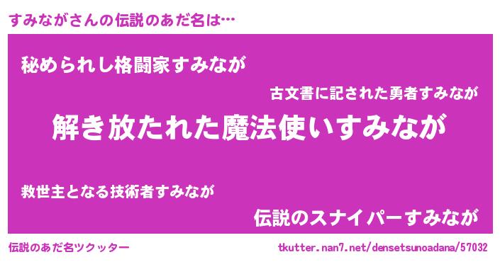 | 男性向けラノベタイトル風あだ名 | 『この素晴らしい世界にすみながを!』 |