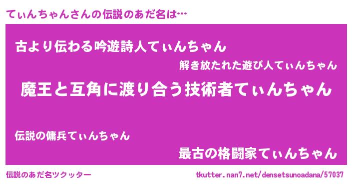 | ヘコむあだ名 | 『てぃんちゃん(小並感)』『レバニラ』 |