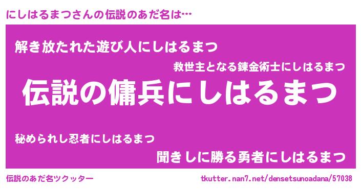 | 胡散臭い通販商品みたいなあだ名 | 『必ず成功する水晶球…その名も「にしはるまつ」』 |