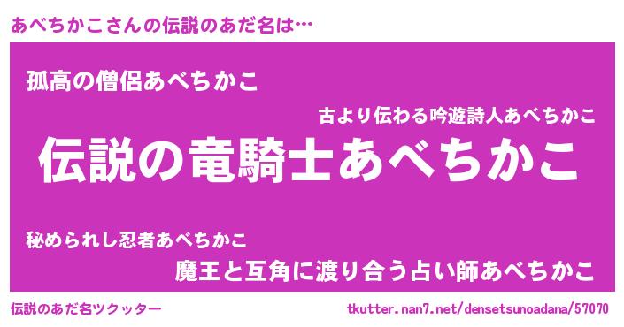 | ヒーロー風カッコイイあだ名 | 『スーパーアベチカコ』『黄金騎士アベ』 |