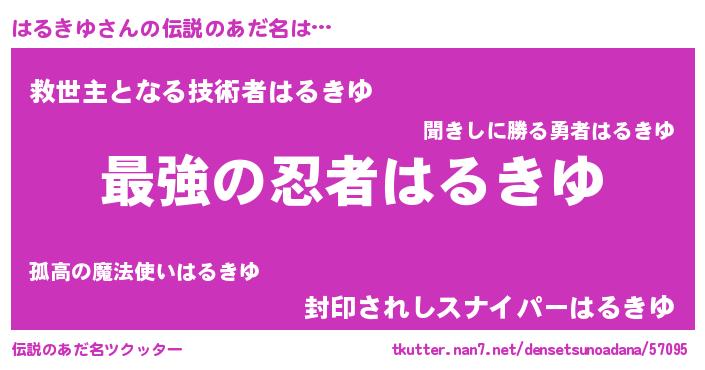 | ヒーロー風カッコイイあだ名 | 『ウルトラはるきゆマン』『ネオハルキユ』 |