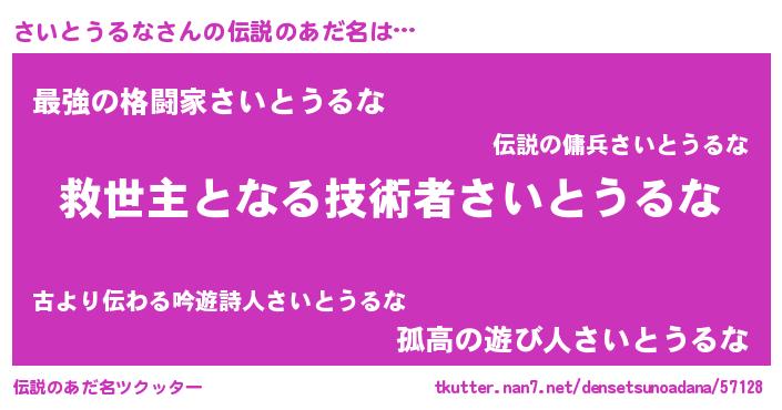 | 意味不明あだ名 | 『自称さいとうるな』 |