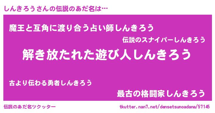 | 意味不明あだ名 | 『とにかく怪しいしんきろう』 |