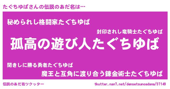 | 男性向けラノベタイトル風あだ名 | 『ダンジョンにたぐちゆばを求めるのは間違っているだろうか』 |