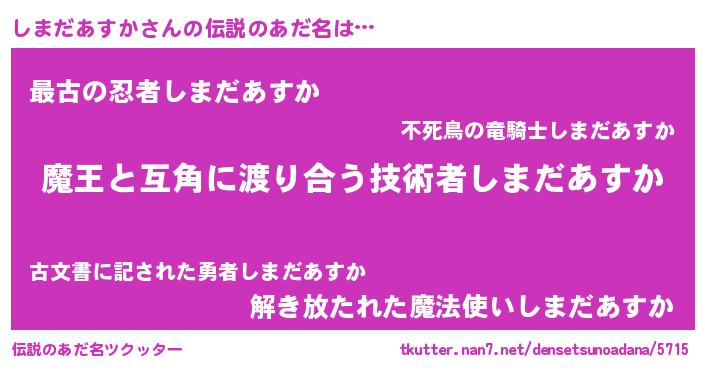 | ヒーロー風カッコイイあだ名 | 『慈愛の使者しまだあすか』 |