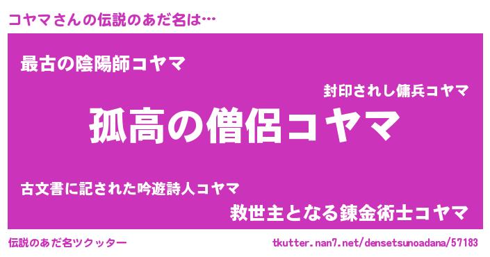 | ヒーロー風カッコイイあだ名 | 『暗黒騎士コヤ』『ウルトラコヤママン』 |