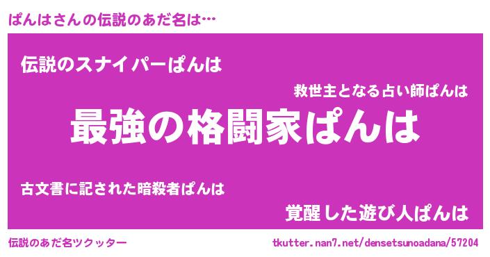 | 意味不明あだ名 | 『住所不定無職ぱんは(3歳)』 |