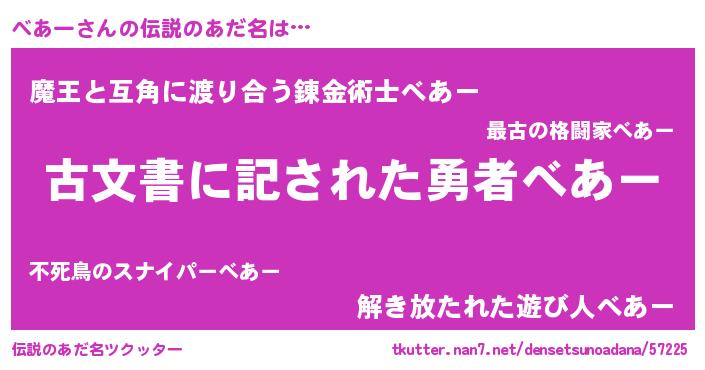 | ヘコむあだ名 | 『べあー(苦笑)』『べあっぺ』『牛乳』 |