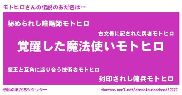 | ヒーロー風カッコイイあだ名 | 『天弓騎士モト』『ウルトラモトヒロマン』 |