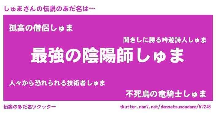 | ヘコむあだ名 | 『酢こんぶ』『しゅ太郎』『しゅにー』 |