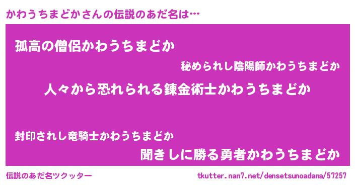 | ヘコむあだ名 | 『かわぷりん』『かわうちまどか(笑)』 |