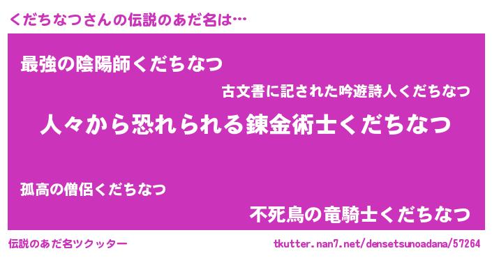 | ヒーロー風カッコイイあだ名 | 『友情の使者くだちなつ』 |
