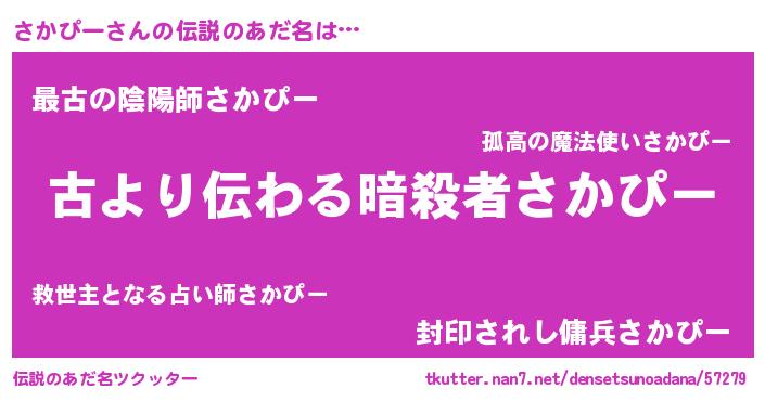 | 男性向けラノベタイトル風あだ名 | 『転生したらさかぴーだった件』 |