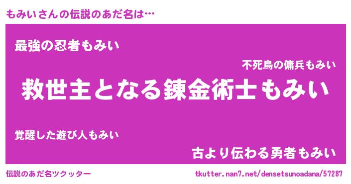 | 男性向けラノベタイトル風あだ名 | 『この素晴らしい世界にもみいを!』 |