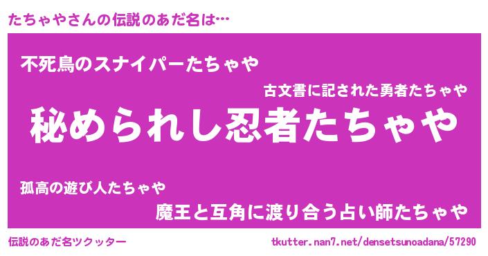 | ヒーロー風カッコイイあだ名 | 『ウルトラたちゃやマン』『仮面タチダー』 |