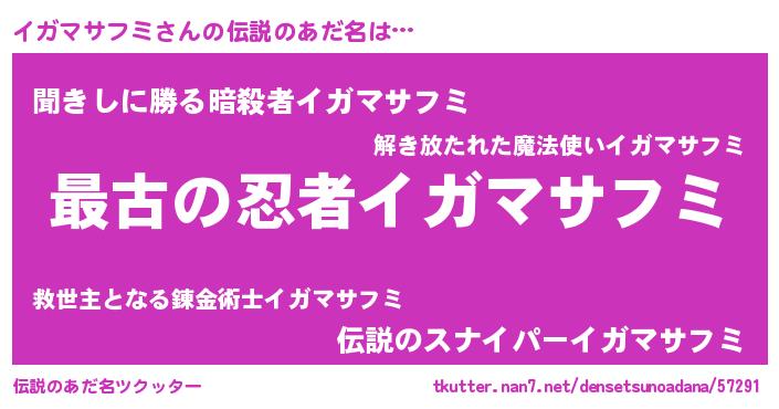 | 男性向けラノベタイトル風あだ名 | 『転生したらイガマサフミだった件』 |